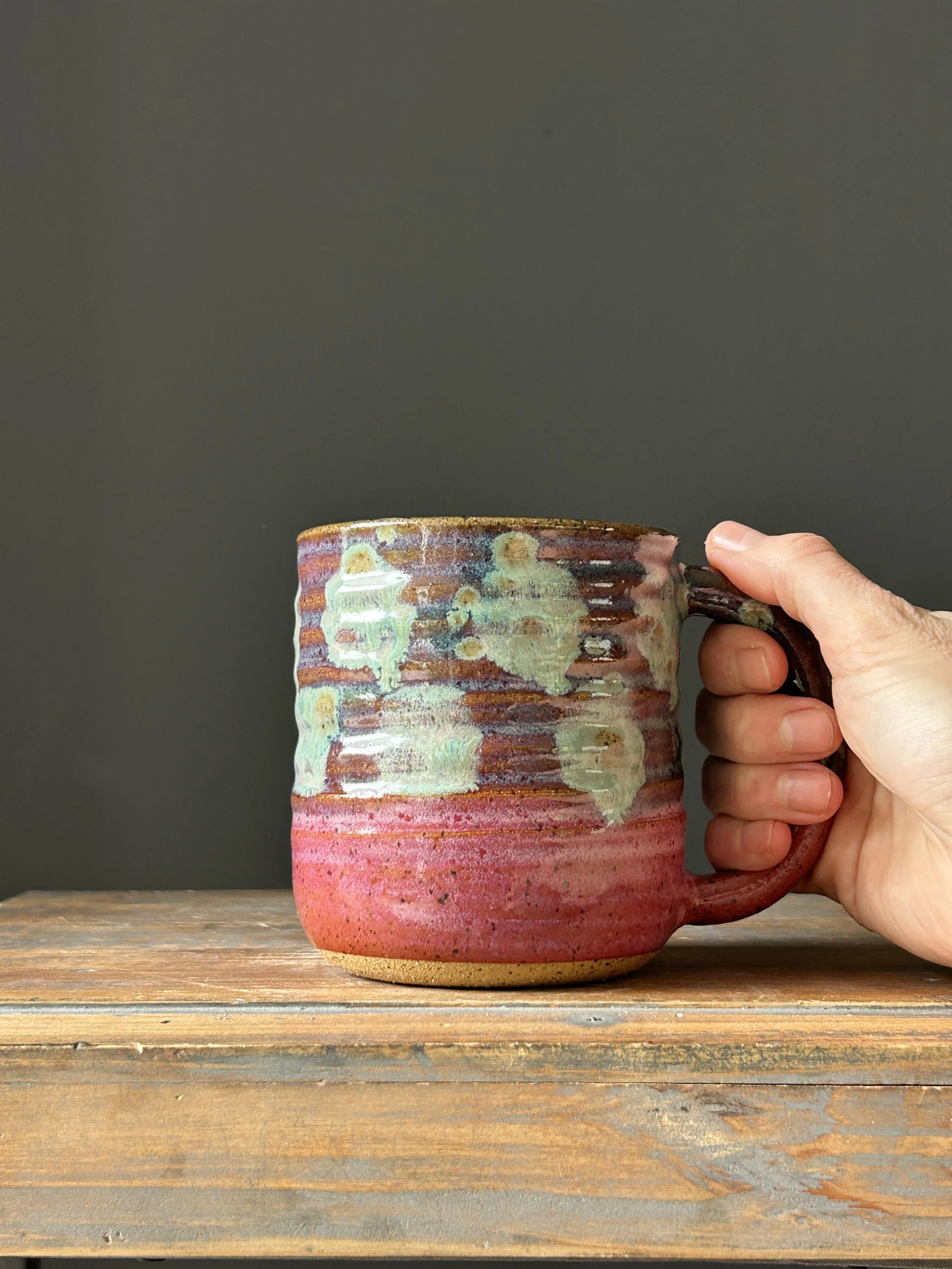 This handmade mug is perfect for your morning coffee or tea, or anything else you want to enjoy from it!