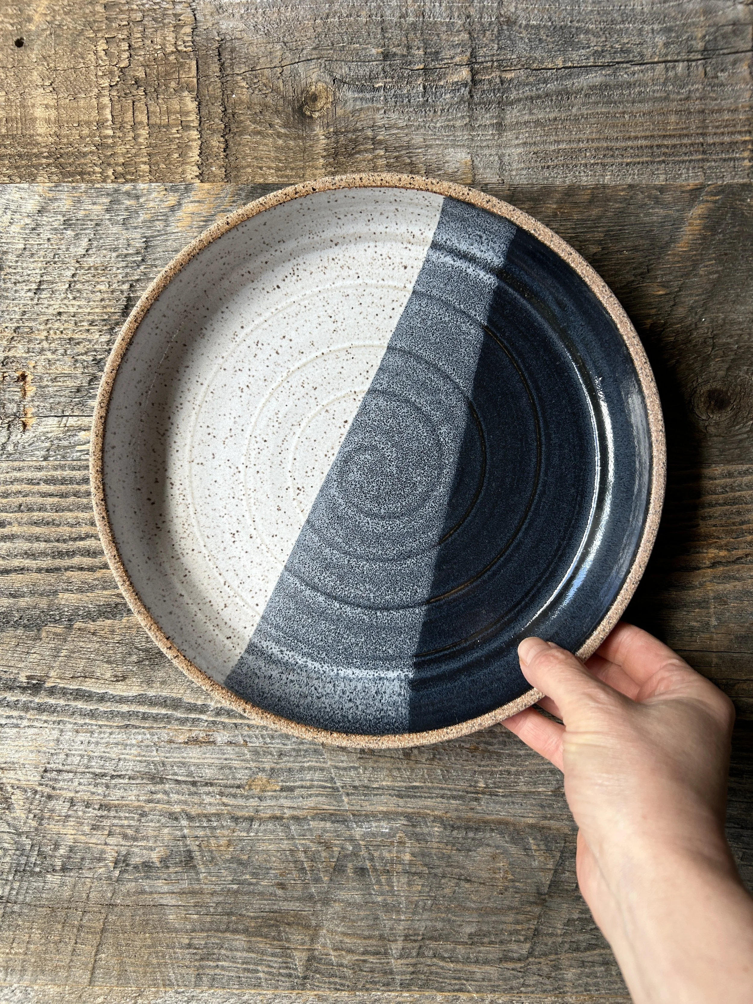 Shallow Snacky Bowl, Fog & White Crossover